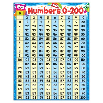 • Theme/design: Numbers 0-200 Owl-Stars!® Learning Chart