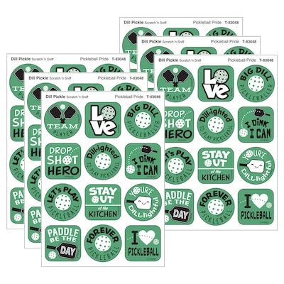 Trend Enterprises Pickleball DILL-ight Dill Pickle Scent Scratch 'n Sniff Stinky Stickers, Green, 48/Pack, 6 Packs/Bundle