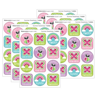 Trend Enterprises Summer Sweetness, Watermelon Scent Scratch 'n Sniff Stinky Stickers, Multicolored, 48/Pack, 6/Packs/Bundle