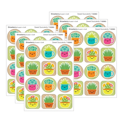 Trend Enterprises Sweet Succulents Strawberry Scent Scratch 'n Sniff Stinky Stickers, Multicolored, 48/Pack, 6/Packs/Bundle