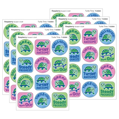 Trend Enterprises Turtle Time Raspberry Scent Scratch 'n Sniff Stinky Stickers, Multicolored, 48/Pack, 6/Packs/Bundle