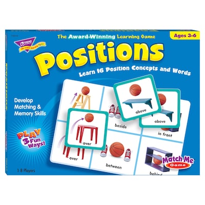 - 1 to 8 players gain an understanding of 16 position concepts by matching words and easy to identify position photographs