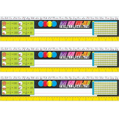 Put a world of facts at children's fingertips. These name plates are grade-appropriate, and feature language arts and math facts. 36 per pack, 3.75" x 18". Sold as 3 packs for a total of 108 name plates.