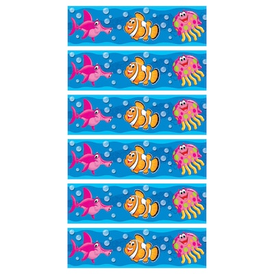 Brighten, sparkle, and inspire! Popular designs and colors capture attention and add energy and excitement to any space. Create show stopping displays, develop eye-catching morning message boards and daily schedules, add pizzazz to scrapbooks, crafts, and projects, the possibilities are endless! 2.75" x 35.75' per pack. Precut, durable, reusable. Sold as 6 packs. Coordinates with Sea Buddies Collection.