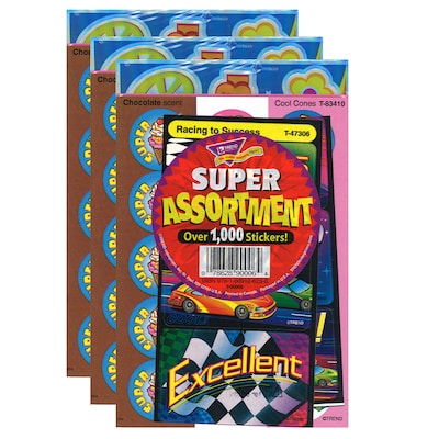 TREND Super Assortment Sticker Pack, 1000 Stickers Per Pack, 3 Packs (T-90006-3)