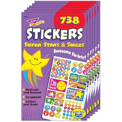 TREND Super Stars & Smiles Sticker Pad, 738 Stickers Per Pad, 6 Pads (T-5010-6)