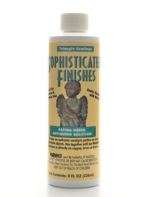 - Patina Green Antiquing Solution is available in 4 oz., 8 oz., and 16 oz. bottles