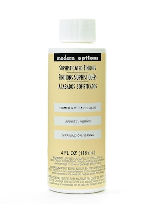 Specifically for use as a primer for Modern Options metallic surfacers. Also seals and protects metallic, patina, and rust finishes from both weather and contact. Dries to a clear and durable finish. Ideal for indoor and outdoor use on wood, masonry, plaster, metal, cloth, canvas, paper, plastic, glass, and more. Cleans easily with soap and water. Use only as a primer and sealer for metallic surfacers. This product is not designed to prevent rust or oxidization on exposed metal surfaces.