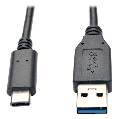 The Tripp Lite data transfer cable adds a USB Type-C ™ device to the USB type-A port on your tablet, computer or USB charger. This 3' cable allows data transfer speeds up to 5 Gb/s and provides power output up to 3 A. It has reversible USB type-C male plug on one end for quick connection. It features superior foil shielding for reliable, error-free data communications and works well with USB 3.0 devices. This cable has gold-plated copper contacts and nickel-plated molded ends that offer a lifetime of heavy use and superior conductivity.