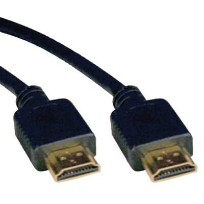 Enjoy a seamless viewing experience on your HDTV from HDMI-enabled digital multimedia sources by using the Tripp Lite HDMI Digital Video Cable. The male HDMI connectors plug securely into the ports on your input device, creating an instant connection. Gold-plated connectors of this high speed HDMI cable are corrosion-resistant and ensure smooth signal transfer. The PVC jacket of this cable is flexible, so you can bend it to fit into your system without damaging the internal copper wiring. The HDMI cable has a length of 6 feet, giving you enough room to maneuver it around your home or system.