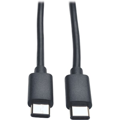 The Tripp Lite black USB 2.0 hi-speed cable measuring 6' connects two devices with USB Type-C connectors like smartphones, tablets, Ultrabooks and computers. It features reversible USB-C male plugs on both ends and is suitable to work with previous USB generations. Superior foil shielding renders reliable, error-free data communication and nickel-plated molded end connectors provide superior conductivity. This cable supports USB 2.0 data transfer speeds up to 480 Mbps and delivers power output up to 3A.