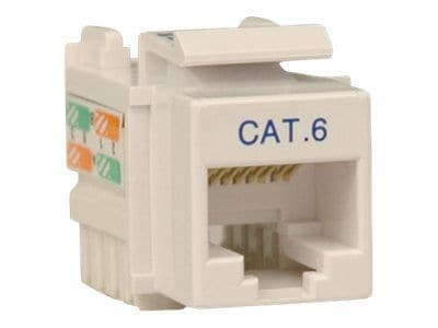 Tripp Lite 110 Style punch down keystone jack in white color has RJ-45 female network connectors and provides flexibility for UTP Ethernet. Jack has patterned printed circuit board construction which is designed to meet CAT6 performance.