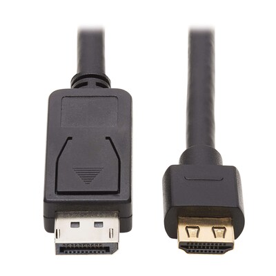 The Tripp Lite 15' DisplayPort to HD adapter cable turns a DisplayPort audio/video signal to project on an HDMI monitor or television. It is compatible with dual-mode DisplayPort graphics cards and supports video resolutions up to 1920 x 1080. This cable has nickel-plated connectors and gold-plated contacts for better conductivity. It features integral strain relief for protection and flexible PVC jacket for easy installation in tight corners.