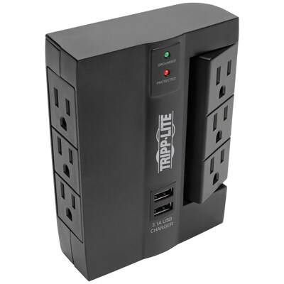 Tripp Lite Protect It! 6-Outlet 2-USB Port Surge Protector with 3 Rotatable Outlets, Black (SWIVEL6USB)