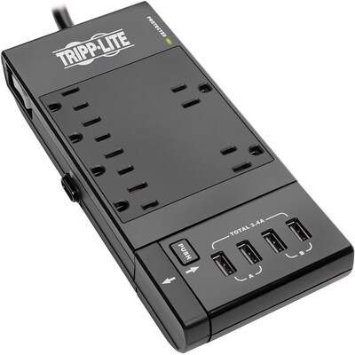 Tripp Lite 6 Outlet Surge Protector, 8' Cord, 1080 Joules (TLP608RUSBB)