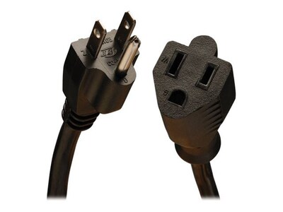 Tripp Lite® Black heavy-duty power extension cord is constructed of 14 AWG wire that features 15 A current rating and 120 V AC voltage rating. 6' Extension cord features a NEMA 5-15P plug and NEMA 5-15R receptacle for easy operation.