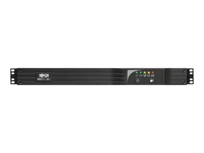 500VA/300W/120V Battery Backup for PC Networks, Security Systems or Digital Signage The SmartPro line-interactive SMART500RT1UN UPS system with AVR provides reliable battery backup and AC power protection against blackouts, brownouts, overvoltages, surges and line noise that can damage valuable electronics or destroy data. The seven-outlet 120V battery backup is ideal protection for rack-mount equipment in your server room or network closet. Allows Time to Back Up Critical Files During a Blackout Backup support allows you to work through short power failures and gives you enough time to safely save files and shut down your system in case of a prolonged blackout. Backup time varies according to load, but the line-interactive UPS system should keep a half load (150W) powered as long as 14 minutes and a full load (300W) up to three minutes. Included WEBCARDLX Network Interface Offers 24/7 Access The Java-free HTML5-based WEBCARDLX interface enables full remote access for site power and UPS status monitoring, configuration, control and email notifications via secure web browser, SNMP, telnet or SSH. It supports 10/100 Mbps auto-sensing for optimal communication with an Ethernet network. Optional EnviroSense2 modules (sold separately) provide a variety of environmental monitoring capabilities, including temperature and humidity conditions. Protocols supported include IPv4, IPv6, HTTP, HTTPS, SMTP, SNMPv1, SNMPv2, SNMPv3, telnet, SSH, FTP, DHCP and NTP. 7 NEMA Outlets Protect Your Connected Components Seven 5-15R outlets provide battery backup, 567 joules of surge protection and voltage regulation for your crucial components. Six are UPS-supported, and one is surge-only to connect peripherals not requiring battery backup. One UPS-supported outlet is switchable, allowing you to power its connected device on and off remotely to reset or reboot it or to shed a less significant load to extend battery runtime for more critical equipment. Automatic Voltage Regulation (AVR) Corrects Low- and High-Voltage Conditions AVR protects your equipment from incremental hardware damage, data loss and performance problems caused by brownouts and overvoltages. The SMART500RT1UN maintains regulated 120V nominal output during brownouts as low as 90V, while keeping the battery fully charged and ready to take over in case of power failure. The internal batteries are field-replaceable and hot-swappable. Premium Protection from EMI/RFI Line Noise Helps Your Equipment Perform Better This UPS system filters out disruptive electromagnetic and radio frequency interference that can inflict hardware damage or data loss. This EMI/RFI filtering also helps your connected components perform better and last longer. Designed for High Efficiency to Help You Save Money and Protect the Environment A 96% efficiency rating reduces BTU emissions, energy consumption and, ultimately, your energy costs. LED Indicators and Audible Alarms Keep You Informed Five front-panel LEDs keep you apprised of line power, battery power, overload, voltage regulation and battery low/replace status at a glance. A multi-function alarm sounds to warn you of power failure, overload and low-battery conditions. Advanced Communications Ports Allow for Automatic Saves and Shutdowns RS-232 and HID-compliant USB ports connect to a computer running Tripp Lite's free downloadable PowerAlert software to enable safe unattended file saves and system shutdown in case of a prolonged power failure. The EPO port supports emergency shutdown in large facilities. Cables are included. Versatile Installation Options Hardware is included for mounting the UPS in 1U of space in an EIA-standard 19-inch 2-port or 4-post rack or in an upright tower position. The 10-foot power cord with NEMA 5-15P plug connects to any compatible AC outlet.