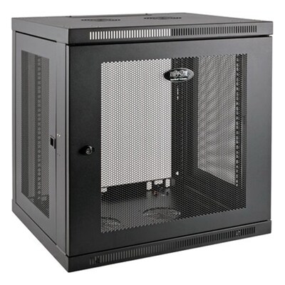 The Tripp Lite SmartRack SRW12UDP Switch-Depth-Plus rack cabinet secures and organizes 12U of 19" rack equipment in network closets, classrooms and other locations with limited floor space. This locking steel cabinet in black, has flow-through ventilation at side, front, top and bottom that helps to keep the equipment cool. The low-profile cabinet has 200 lbs load capacity.