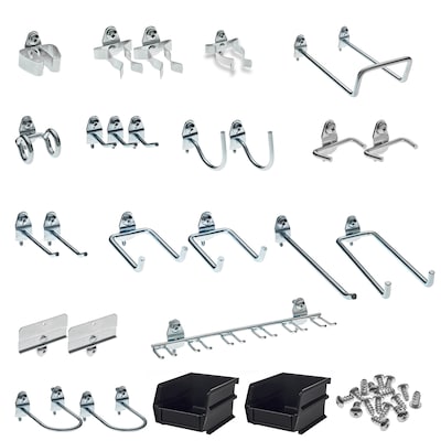 With Triton Products unique DuraHook 76901 26-piece hook and hanging bin assortment kit you can meet a wide range of pegboard storage requirements. With 4 distinct positions for vertical and horizontal mounting you can make use of multiple hooks for heavy, large and odd-shaped items. Lock the hooks in place with a locking tab that mounts to the pegboard from the front. This kit can be used on any 1/8" or 1/4" pegboard.