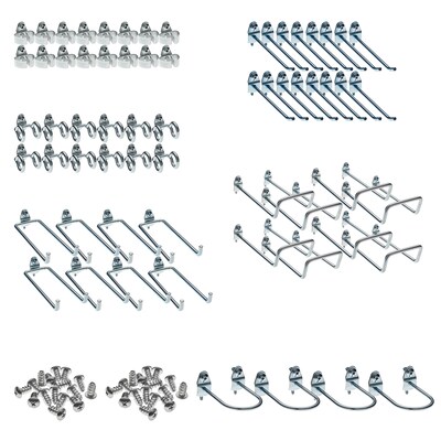 Meet all your pegboard requirements with the Triton Products DuraHook 64-piece hook Kit that features a wide range of hook styles. Lock the hooks in place with a locking tab that mounts to the pegboard from the front. There is no need to remove the board for repositioning or installation as these DuraHooks install from the front. Store large, heavy and odd shaped items with these hooks that mount vertically and horizontally in 4 distinct positions. This kit can be used on any 1/8" or 1/4" pegboard.