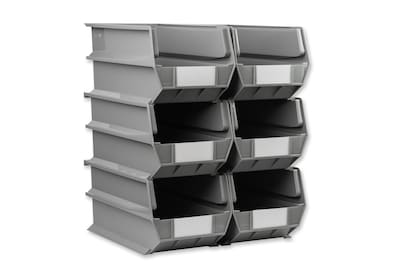 Triton Products LocBin Extra Large Stackable Plastic Storage Bin, 7" x 8.25"x 14.75", 14.75 Qt., Gray, 6/Pack (3-240GR)