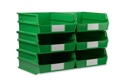 Triton Products LocBin Large Stackable Plastic Storage Bin, 5" x 11"x 10.875", 10.36 Qt., Green, 6/Pack (3-235GRN)
