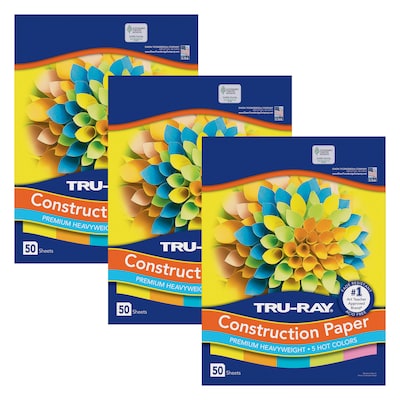 Heavyweight 100% vat-dyed sulphite with longer, stronger fibers. Tru-Ray Construction Paper is tough enough to take scoring, folding and curling without cracking and tearing. Its superior fade-resistance keeps projects brighter and fresher longer. Colors include: Brilliant Lime, Shocking Pink, Electric Orange, Atomic Blue, and Lively Lemon. Acid free for less fade. 50% recycled fiber content and recyclable. Measures 12" x 18". Each pack includes 50 sheets. Sold as 3 packs for a total of 150 sheets.