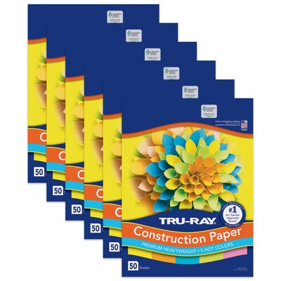 Heavyweight 100% vat-dyed sulphite with longer, stronger fibers. Tru-Ray Construction Paper is tough enough to take scoring, folding and curling without cracking and tearing. Its superior fade-resistance keeps projects brighter and fresher longer. Colors include: Brilliant Lime, Shocking Pink, Electric Orange, Atomic Blue and Lively Lemon. Acid free for less fade. 50% recycled fiber content and recyclable. Measures 9" x 12". Each pack includes 50 sheets. Sold as 6 packs for a total of 300 sheets.