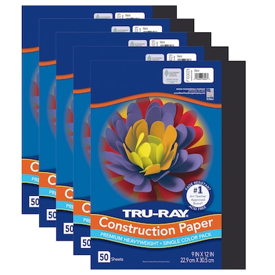 Tru-Ray 9" x 12" Construction Paper, Black, 50 Sheets/Pack, 5 Packs/Bundle (PAC103029-5)