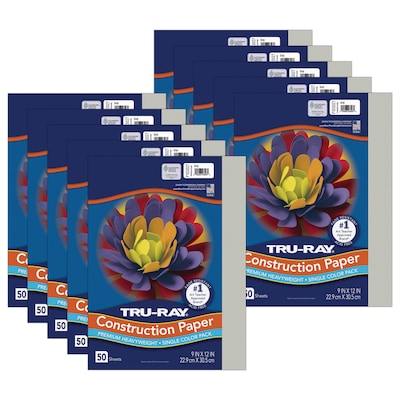 Tru-Ray 9" x 12" Construction Paper, Gray, 50 Sheets/Pack, 10 Packs/Bundle (PAC103027-10)