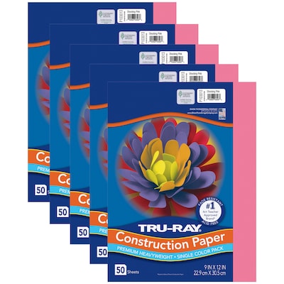 Tru-Ray 9" x 12" Construction Paper, Shocking Pink, 50 Sheets/Pack, 5 Packs/Bundle (PAC103013-5)