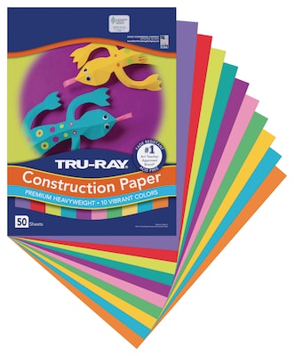 Heavyweight 100% vat-dyed sulphite with longer, stronger fibers. Tru-Ray Construction Paper is tough enough to take scoring, folding and curling without cracking and tearing. Its superior fade-resistance keeps projects brighter and fresher longer colors. Colors include: Magenta, Festive Green, Turquoise, Brilliant Lime, Violet, Atomic Blue, Shocking Pink, Pumpkin, Gold and Festive Red. 50 sheets per package. Acid free for less fade. 50% recycled fiber content and recyclable.