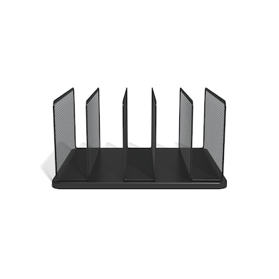 Improve the appearance of your workspace with this black mesh vertical file organizer. Tightly woven mesh provides durability, and a black finish complements flat square-rounded corners for a stylish look. With five slots, this sorter lets you keep files organized and easily accessible. This TRU RED™ five-slot black mesh vertical file organizer includes feet at each corner to prevent scratching up your work surface.
