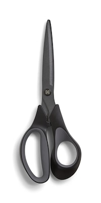 The ergonomic handles boast a soft-touch feel for enhanced comfort and control, while the curved 3-D blades bring sharp, clean lines to your projects. With a non-stick titanium coating, these TRU RED™ 8-inch straight-handle scissors resist buildup when cutting through labels, tape and other self-adhesive materials.