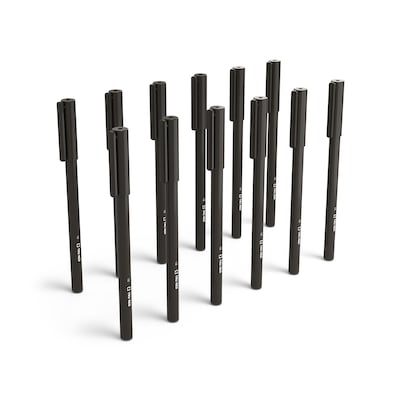 Write notes, directions, and to-do lists with these ballpoint pens. The 1.0mm ballpoint tips produce bold, clean lines, while round barrels sit easily in your hand. Filled with low-viscosity ink, these pens reduce smudging, making them an ideal option for left-handed writers. These TRU RED™ black medium point ballpoint stick pens have convenient caps that clip onto notebooks and pockets.
