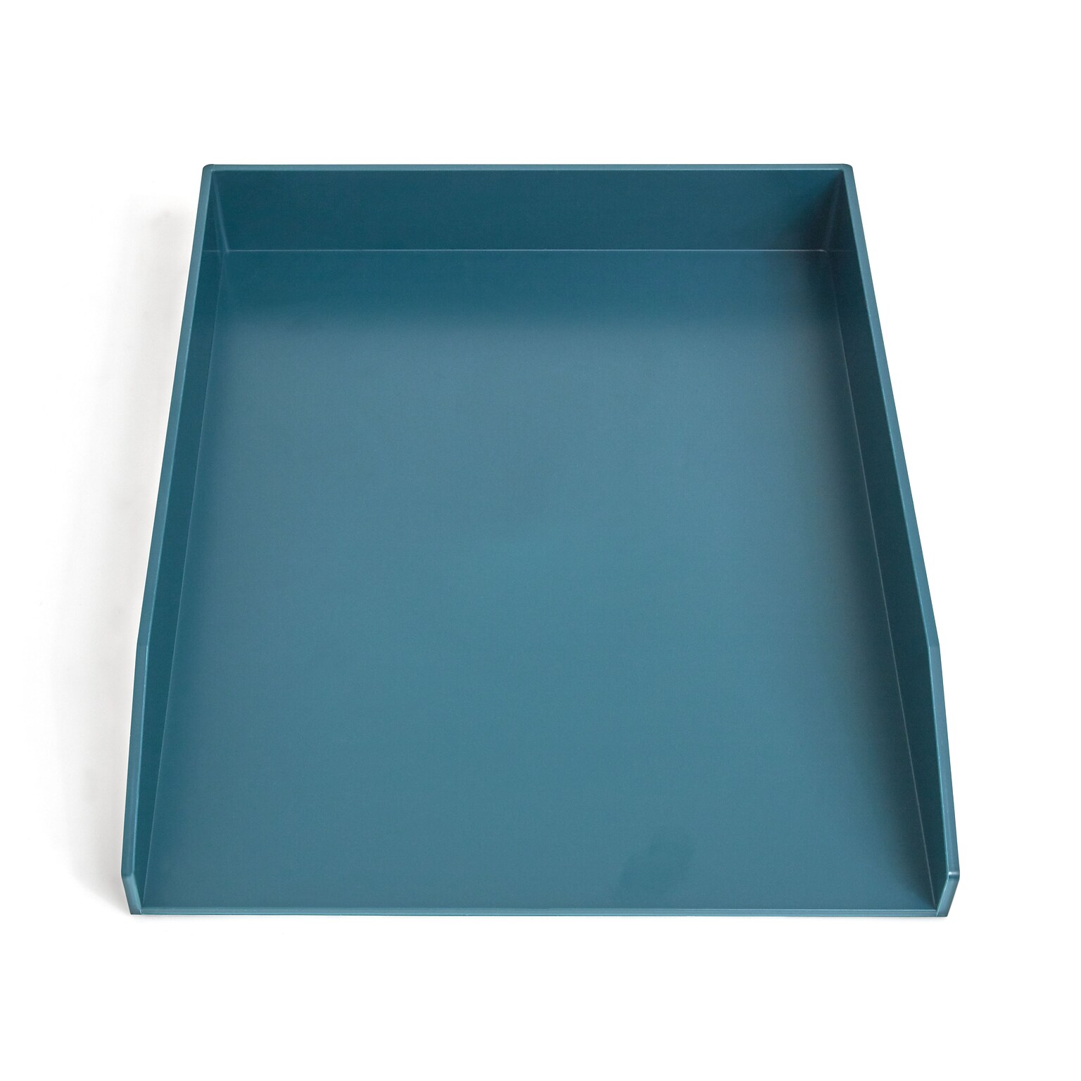 - Teal matte finish plastic letter tray holds up to 200 sheets without bowing. Use stand alone or mix and match with other pieces