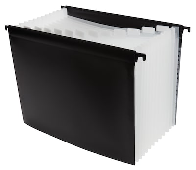 Protect papers with this hanging file folder. The seven pockets offer support for further categorization options, while top tabs provide adequate space for labeling and help you locate projects easily. An expandable spine creates extra room for larger files. This TRU RED letter-size black poly hanging file folder features a distinct color to help color-code your records by the client or subject.