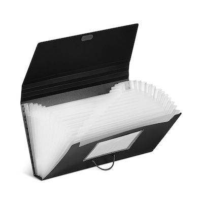 Transport paperwork to and from the office securely with these expanding accordion files. The 13 pockets keep receipts, deposit slips and other paperwork neatly organized, while the included labels make it easy to customize each section. Convenient dimensions accommodate check-size documents to keep them protected from loss. With durable construction, these Staples plastic expanding check-size accordion files resist tearing and exposure to water, helping prevent potential damage.