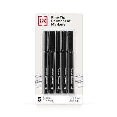 Grab these fine-tip black permanent markers for any of your writing, organization or creative projects that require precise and clean details. The quick-dry ink creates bold, smudge-free strokes for a variety of tasks around the home, office or classroom. Our Squircle™ barrel shape offers a comfortable grip and keeps the marker from rolling away. With this TRU RED 5-pack, you can leave your mark anywhere or have extras on hand when inspiration strikes.