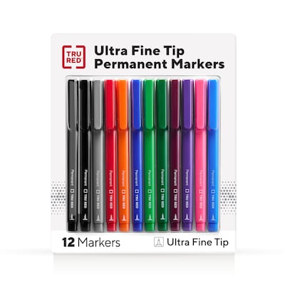 TRU RED™ Pen Permanent Markers, Ultra Fine Tip, Assorted, 12/Pack (TR54531)