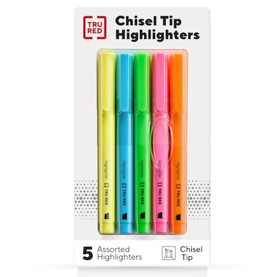 Capture and remember the most important details in vibrant assorted colors with this 5-pack of TRU RED versatile comfort-grip, pocket-clip highlighters.