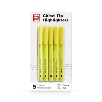 Highlight all the key information you want to remember in swipes of bold color or create bright, thin lines for important notes with these versatile chisel-tip highlighters. The vibrant fade-resistant ink helps to keep any marked documents clear for studies or work and the pocket clip lets you keep them close at hand. Our Squircle™ barrel shape offers a comfortable grip and keeps these highlighters from rolling away while rubberized grips provide extra comfort. The odorless, non-toxic TRU RED pocket highlighters 5-pack can be shared with a team or classroom ready to focus in any space.