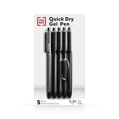 TRU RED™ Retractable Quick Dry Gel Pen, Extra Fine Point, 0.38mm, Black, 5/Pack (TR56951)