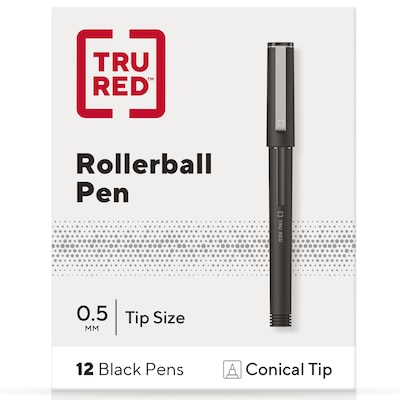 Keep your office stocked with this 12-pack of TRU RED 0.5mm black rollerball pens.