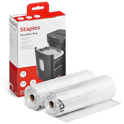 Prevent piles of scrap paper from creating confetti all over the office with these shredder bags. The convenient size works with most personal shredders for added versatility. With durable construction, these Staples 15.8-gallon shredder bags hold contents securely inside until you're ready to take out the trash.