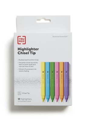 TRU RED™ Pocket Stick Highlighter with Grip, Chisel Tip, Assorted, 12/Pack (TR54586)