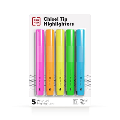 TRU RED™ Pocket Stick Highlighter with Grip, Chisel Tip, Assorted, 5/Pack (TR54584)