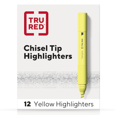 Highlight all the key information you want to remember in big swipes of bold color or create bright, thin lines for important notes with these versatile chisel-tip highlighters. The vibrant fade-resistant ink helps to keep any marked documents clear for studies or work. A large tank size and ink reservoir make it ideal for your biggest projects. Our Squircle™ barrel shape offers a comfortable grip and keeps these highlighters from rolling away while rubberized grips provide extra comfort. The odorless, non-toxic TRU RED tank highlighters 12-pack can be shared with a team or classroom ready to focus in any space.