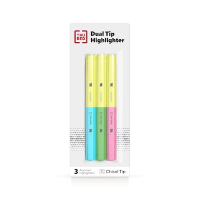 TRU RED™ Twin Tip Highlighters, Chisel Tip, Assorted Colors, 3/Pack (TR57834)
