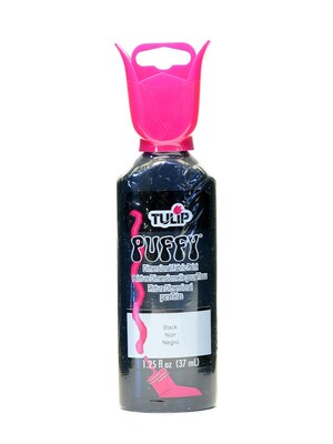Tulip Puffy Dimensional Fabric Paints create a durable puffy effect on your fabrics and crafts. The non-toxic paints are formulated for strong adhesion on wood, glass, fabric, and more!The paints are available in 1.25-ounce (37 ml) bottles with the EasyFlow design, reducing hand fatigue and improving accuracy and precision.The bottles also feature cap stands, so you can store them upside down. This minimizes air bubbles and improves flow.
